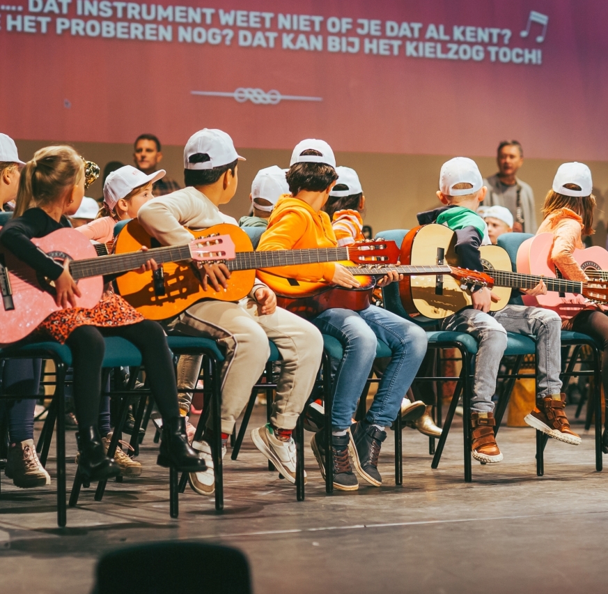 Kielzog werkt samen met 30 scholen in Midden-Groningen en verzorgt jaarlijks het Cultuurmenu: een workshop + een voorstelling. Elke leerling in groep 4 bezoekt daarbovenop ook nog de Muziekoriëntatie: een ochtend instrumenten proberen en kennismaken met muziek. Zo komen bijna 4000 leerlingen jaarlijks in aanraking met cultuur.
