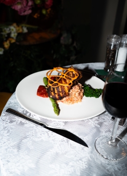 Je kunt kiezen uit vier wisselende gerechten, waarvan in elk geval één vegetarisch gerecht. Heb je geen theaterkaartje? Dan betaal je € 23,50 voor de Theaterplate. We serveren de Theaterplate tussen 18:30 en 19:00 uur.