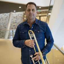 Net als de trompet, de tuba en de hoorn is de trombone een koperinstrument. Bijzonder van de trombone is dat je er ook mooie glissando’s op kunt maken, glijden van de ene toon naar de andere. Met de schuif bepaal je de toonhoogte. Er zijn verschillende soorten trombones, de alttrombone kan behoorlijk hoog en de bastrombone heel laag. De tenortrombone zit er tussen in en is het meest gebruikelijke type.