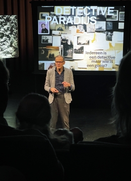 In Detectiveparadijs laat Aarsman zien hoe je de wereld scherper observeert. Aan de hand van actuele nieuwsfoto’s duikt hij met ons in de details, toont hij valkuilen en legt hij het proces van onderzoek bloot. Zelfs een cold case ontbreekt niet. Het resultaat? Je leert echt waarnemen. Althans, in theorie. De enige manier om het in de praktijk te checken, is door zelf naar het theater te komen.