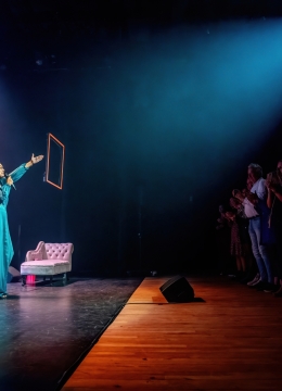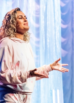 Iris Rulkens neemt je in haar luchtige theatershow Hier is Iris Live mee op een opwindende reis door haar leven.