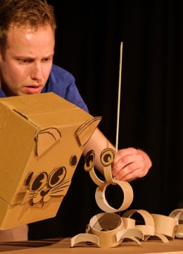 Help kat Ton met zoeken en ga mee op avontuur! Karton komt tot leven in een verrassende voorstelling vol beweging . Met minimale middelen en maximale nieuwsgierigheid ontstaat op magische wijze een nieuwe wereld.