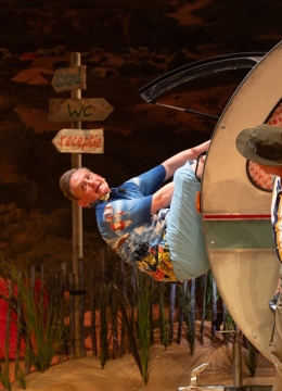 De nieuw geschreven versie van deze hilarische, dolkomische campingvoorstelling is nóg sneller, nóg grappiger, nóg hysterischer en helemaal van deze tijd! Jon van Eerd laat zich als tekstschrijver én als regisseur weer van zijn beste en vooral vertrouwde kant zien en staat garant voor een avond brullen van de lach. En u weet het; als er iemand de koning van de komedie is, dan is hij het wel. Op alle fronten!