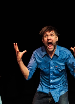 Met zijn innemende mix van spel, poëzie en muziek trekt De Leeuwe het publiek direct zijn verhaal in en laat hij de toeschouwers niet los tot hij is uitverteld