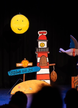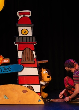 Groetjes uit Strandwijk aan Zee (4+) is een heerlijk feel-good strandavontuur waar je gaat golfsurfen, zingen, dansen en zelfs een kampvuur maken! Na de show is er uitgebreid de mogelijkheid om met Tonky & Jack op de foto te gaan.