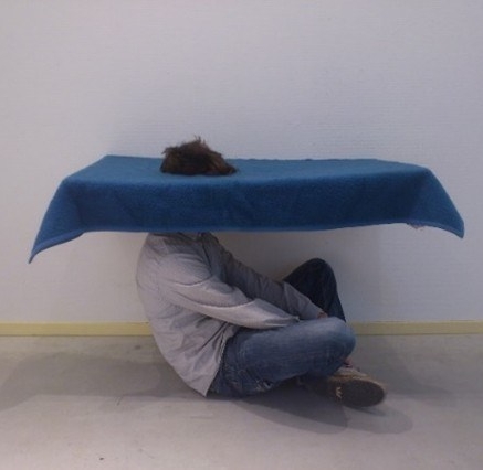 Op dat moment was ik bezig met het fenomeen ‘fotobord’. Een bord waar je achter kan zitten met je hoofd door een gat, waarbij iemand vervolgens een foto moet nemen. Hierdoor kwam ik op het idee om het bord horizontaal neer te leggen. Zo kan je een foto maken van alleen je haar, geïsoleerd van je lichaam.