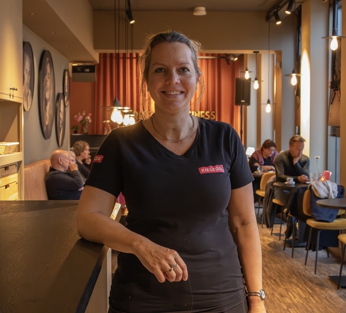 Ik werk twee ochtenden in de week (vrijwilllig) met veel plezier in het mooie grand café van Kielzog. Waarom vrijwillig? Ik kan niet meer meedoen op de arbeidsmarkt, omdat ik snel moe word in verband met mijn hersenletsel. Maar ik ben niet een persoon die achter de geraniums gaat zitten en ik wil graag onder de mensen blijven. Ik ben blij dat ik iets kan doen voor de medemens, zoals o.a. een bakje koffie inschenken, een leuk praatje maken met de gezellige gasten en collega's. Ik ben super blij dat ik een deel mag zijn van het Kielzog team.