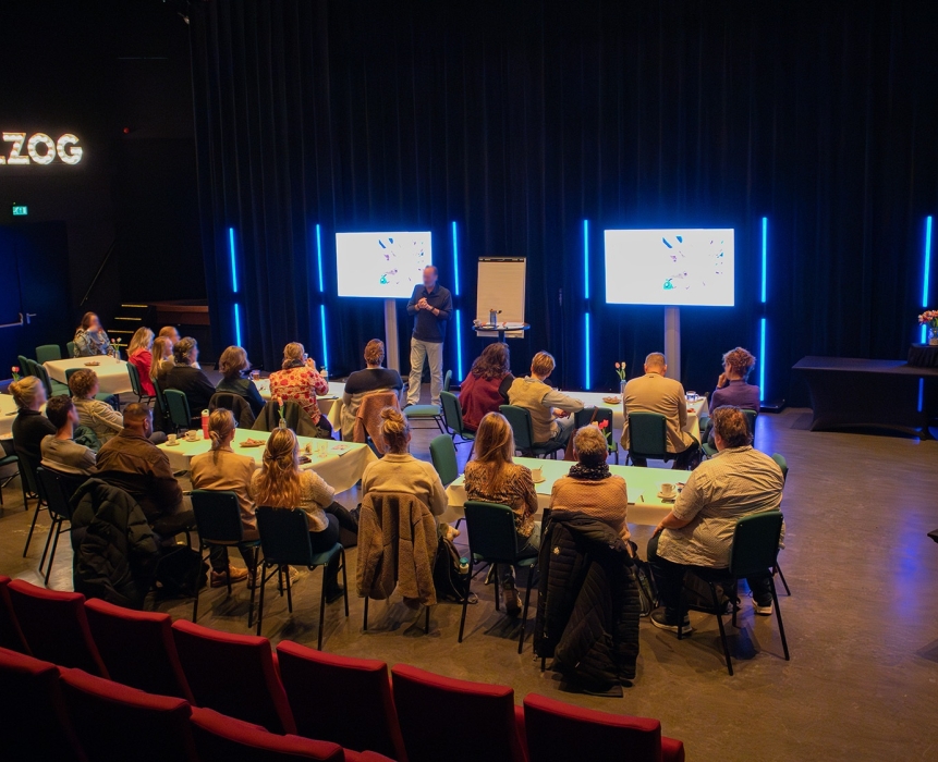 Onze theaterzaal is flexibel in te delen voor zowel grote als kleine bijeenkomsten. Organiseer jouw evenement in theatrale sfeer.